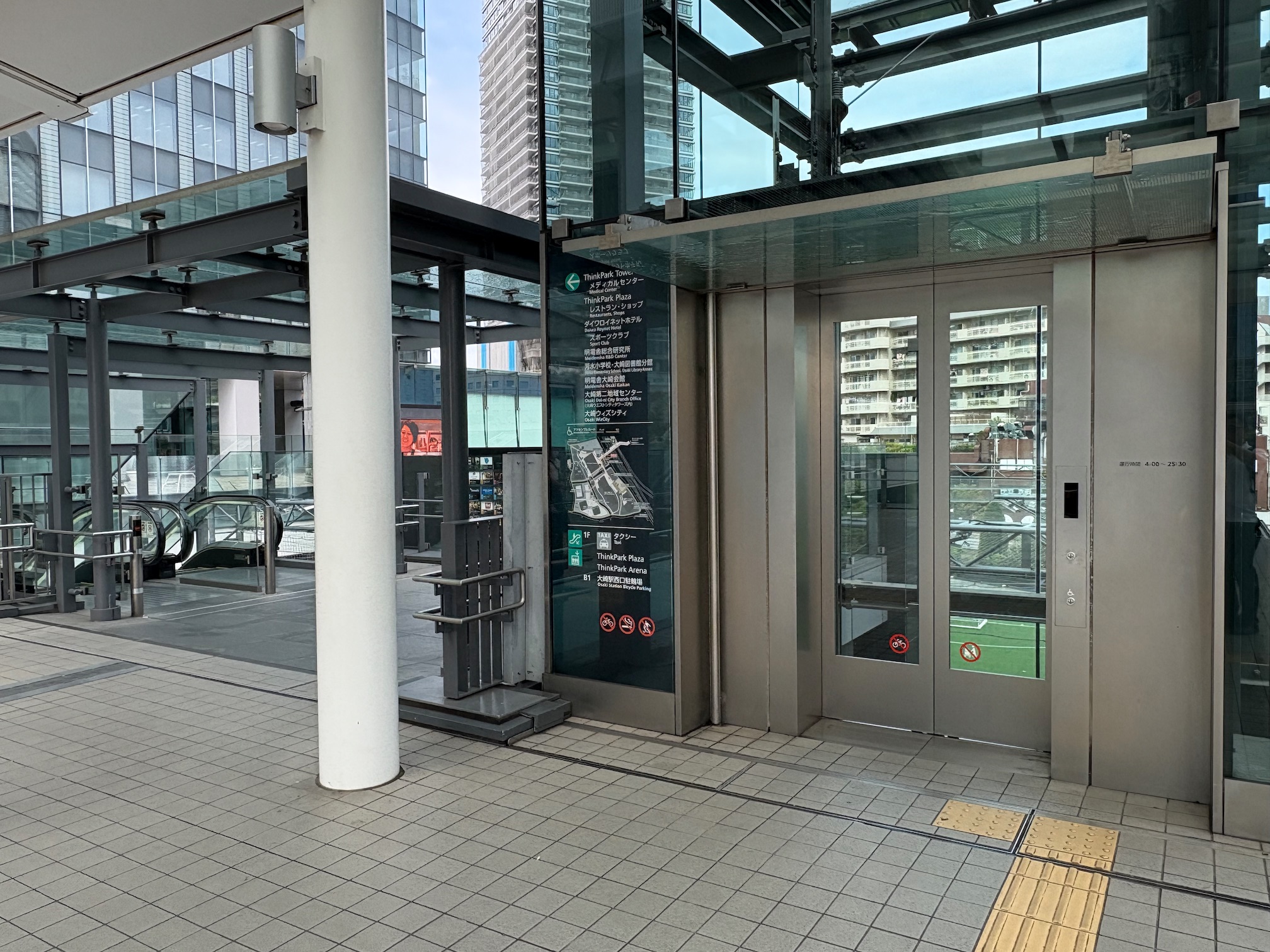 途中まで行くとエレベーターとエスカレーターがあるので地上へ降ります。